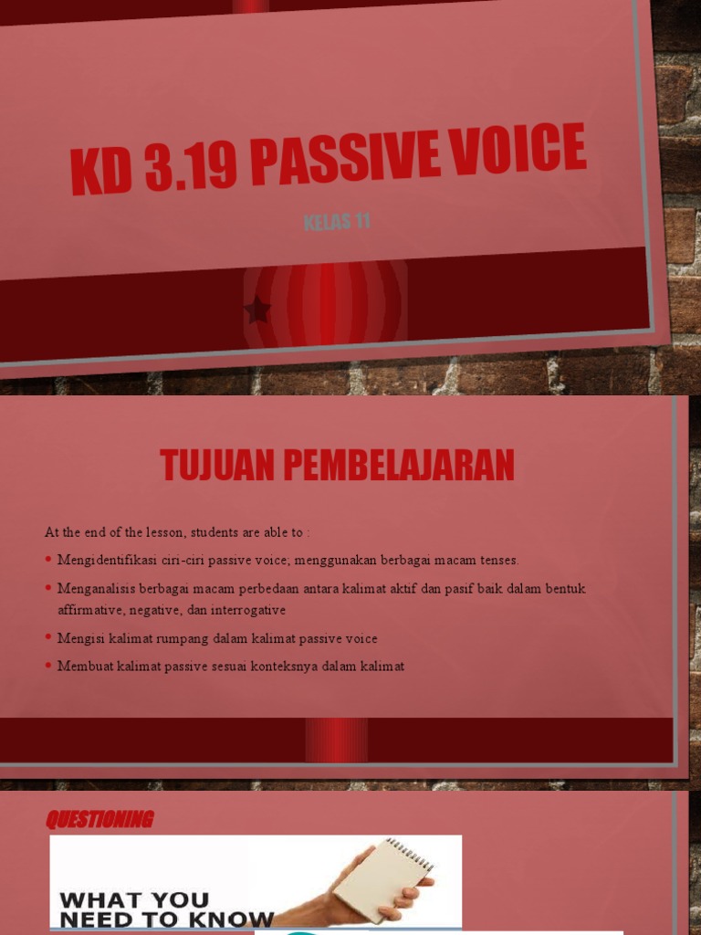 Ciri Ciri Kalimat Passive Voice : Passive Voice Pengertian Penggunaan Bentuk Rumus Contoh Kalimat Latihan Soal : Kalimat pasif merupakan sebuah kalimat yang subjeknya (s) terkena suatu tindakan/aktivitas, perbuatan, atau pekerjaan yang.. Passive voice adalah jenis kalimat atau klausa di mana subjek menerima tindakan dari kata kerja. Dalam bahasa indonesia disebut kalimat pasif. Kebalikan dari active voice yang terfokus pada pihak pelaku aksi (doer of action), passive voice lebih fokus pada pihak yang. (passive) oneng is loved by bajuri. Persamaan dan perbedaan otot lurik, otot.